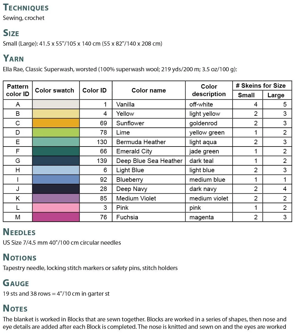 This portable and whimsical project is worked in blocks that are sewn together. The pattern provides access to help videos that will teach you each of the techniques.